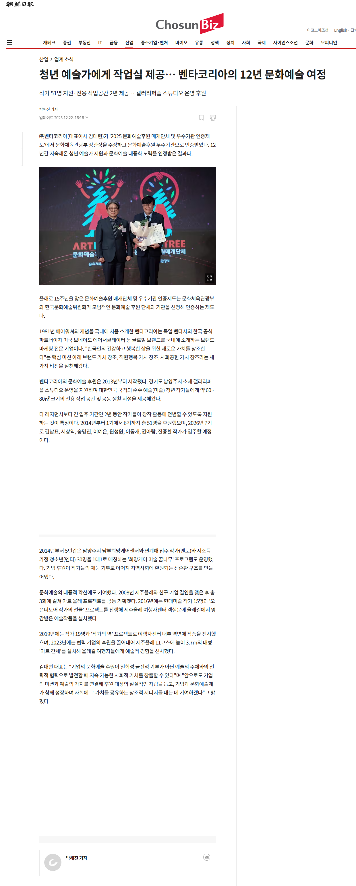 청년 예술가에게 작업실 제공… 벤타코리아의 12년 문화예술 여정_chosun biz